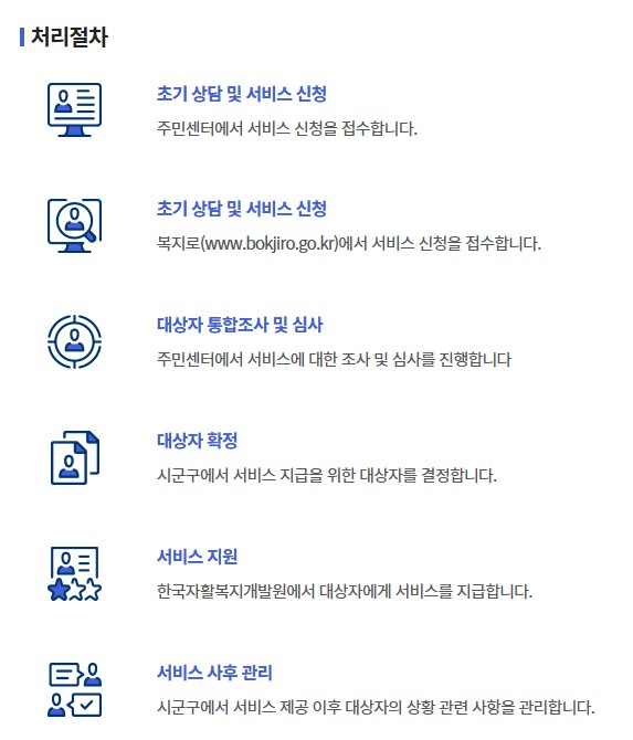| 신청 접수 | 복지로 온라인 신청 또는 주민센터에서 신청 |
