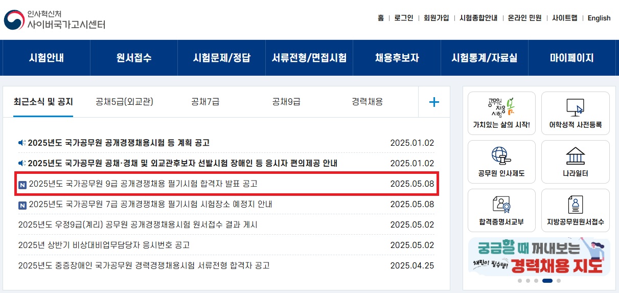 드디어 떴다! 2025년 9급 공무원 필기 합격자 발표! 여러분의 이름도 그 명단에 있었나요?